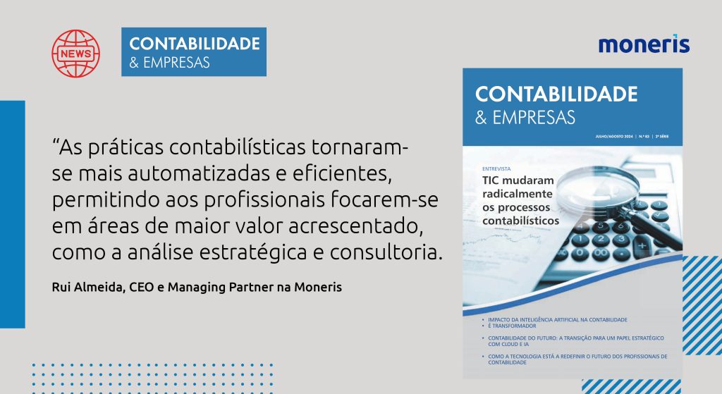 Rui Pedro Almeida, CEO and Managing Partner at Moneris, wrote an article about the impact of digital transformation on accountants, in the latest special “Accounting and companies” of Vida Económica. “Accounting practices have become more automated and efficient, allowing professionals to focus on areas of greater added value, such as strategic analysis and consulting”